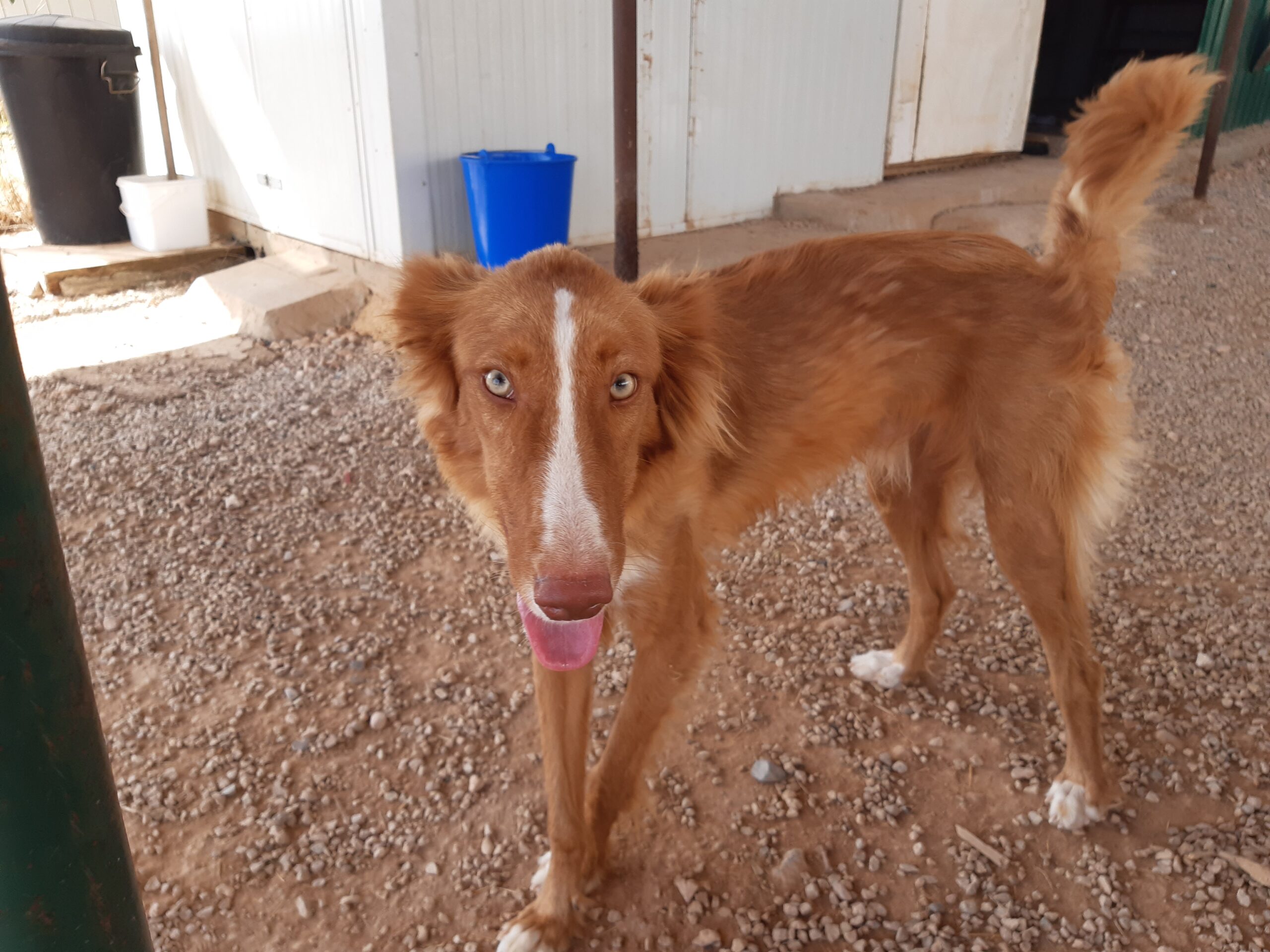 Fue recogido por la Guardia Civil en la carretera de Benaguasil, llevaría varias semanas abandonado vagando con otro perro que no se pudo recoger. Resultó ser un perro muy amable y cariñoso, que se deja acariciar y nos busca, se lleva muy bien con los compañeros de recinto y su pelaje largo y ojos claros lo hace encantador.