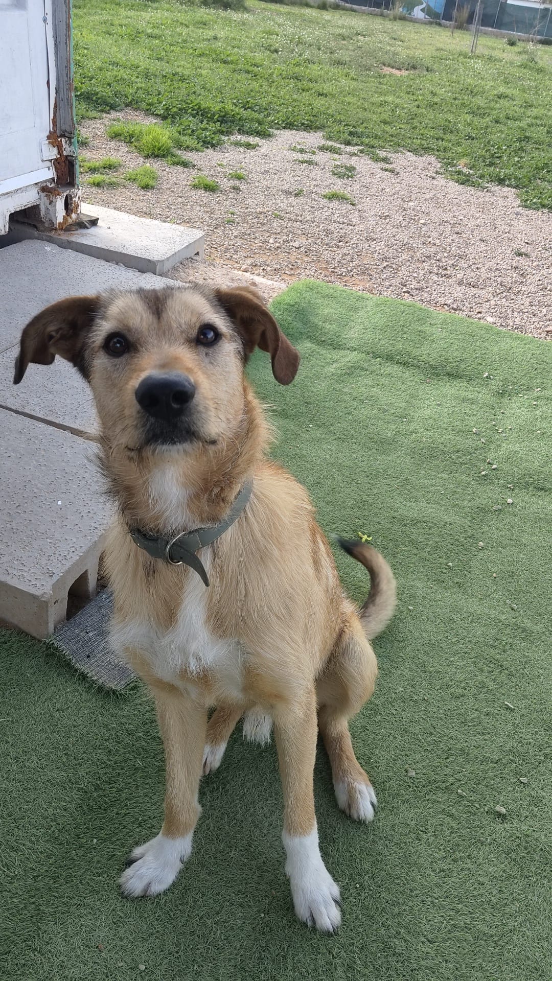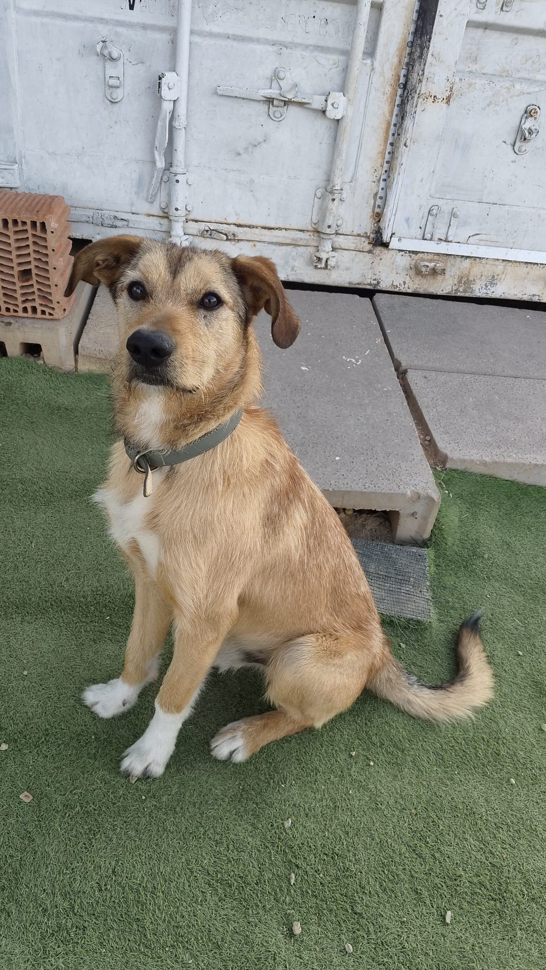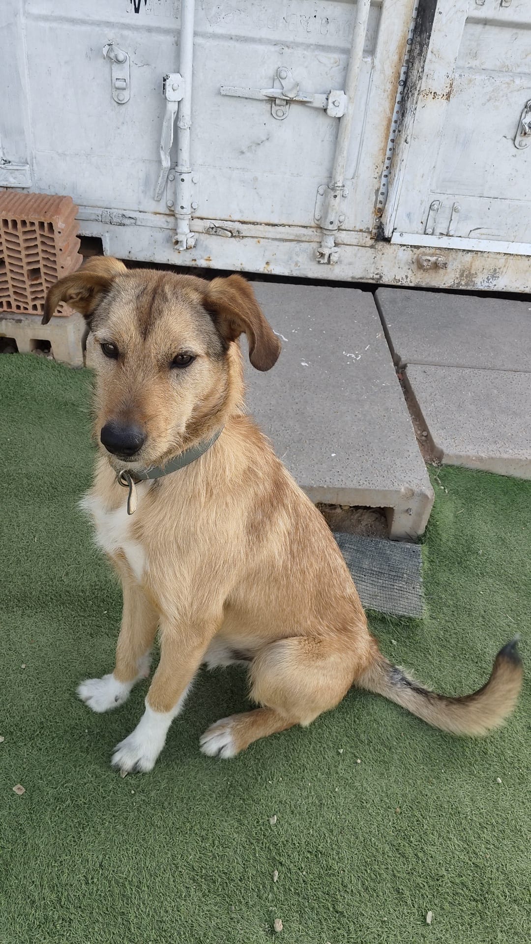 Es todavía un cachorro de 9 meses. Deambulaba por un pueblo, perdido, hasta que se identificó su chip que no era de esta comunidad pero no querían al perro así que se quedó con nosotros.